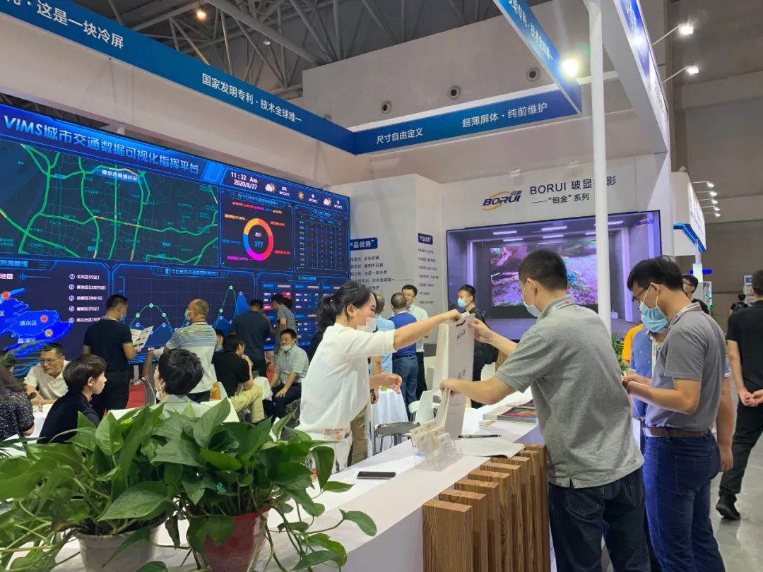 重慶市公安局科信處的領(lǐng)導也蒞臨鉑睿光電展位進(jìn)行參觀(guān)指導,技術(shù)人員為他們就不同系列的每塊屏都做了詳盡的介紹。